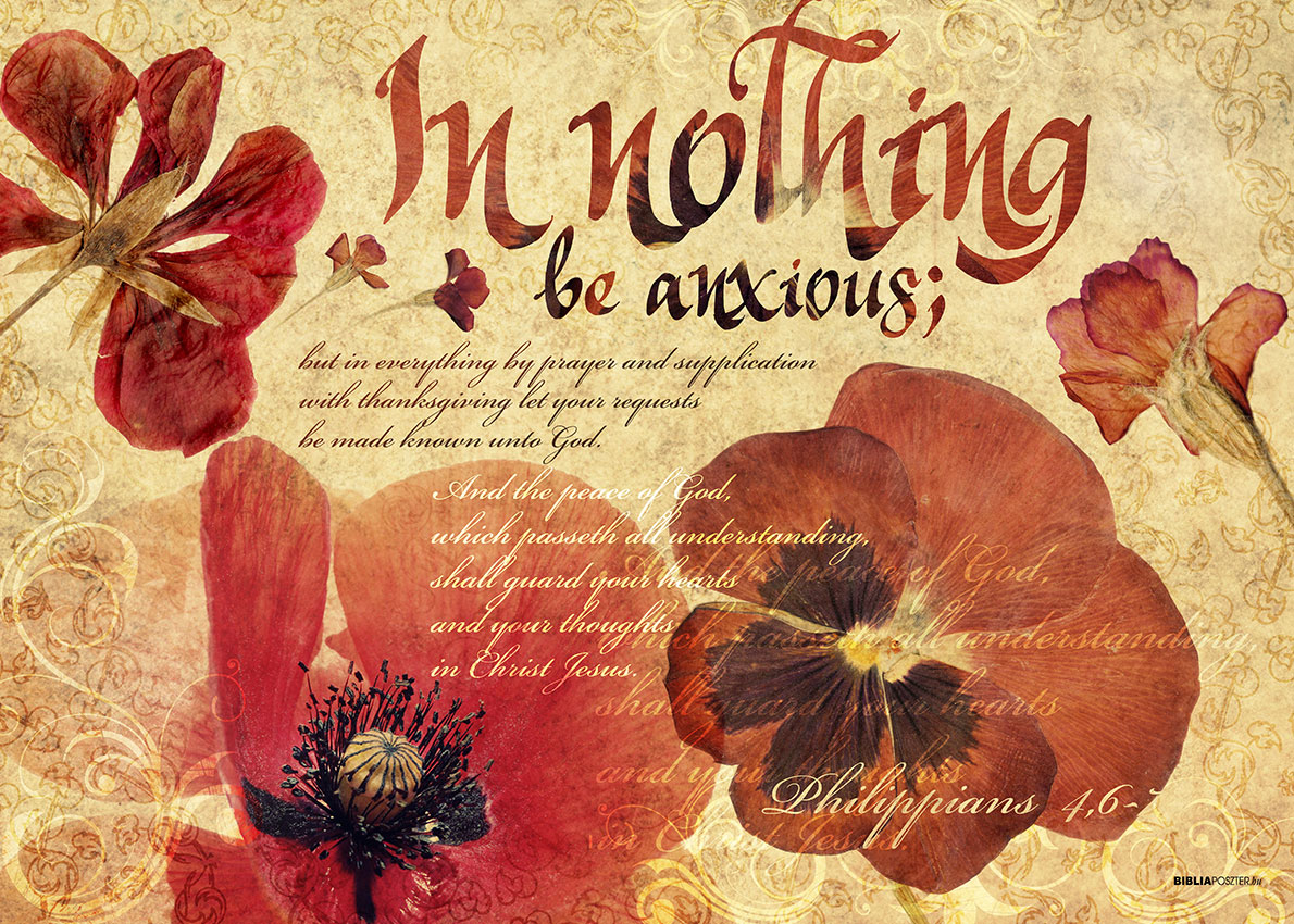 „In nothing be anxious; but in everything by prayer and supplication with thanksgiving let your requests be made known unto God. And the peace of God, which passeth all understanding, shall guard your hearts and your thoughts in Christ Jesus.”