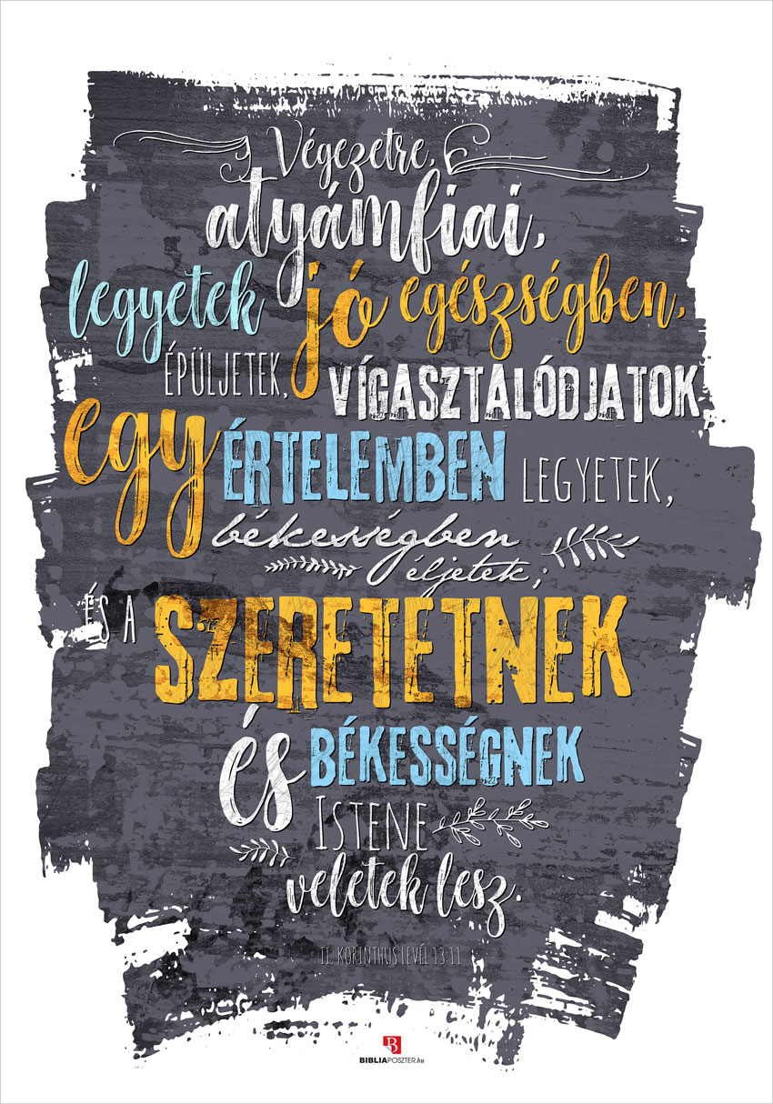 „Végezetre, atyámfiai, legyetek jó egészségben, épüljetek, vígasztalódjatok, egy értelemben legyetek, békességben éljetek; és a szeretetnek és békességnek Istene lészen veletek.”