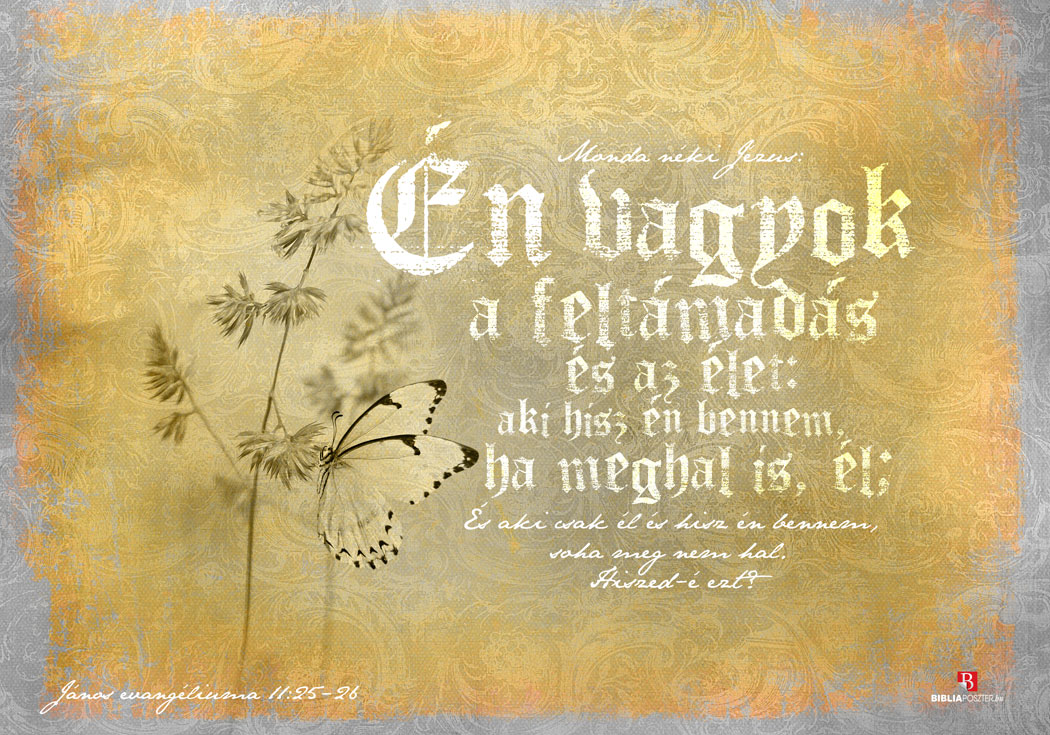 „Monda néki Jézus: Én vagyok a feltámadás és az élet: aki hisz én bennem, ha meghal is, él; És aki csak él és hisz én bennem, soha meg nem hal. Hiszed-é ezt?”