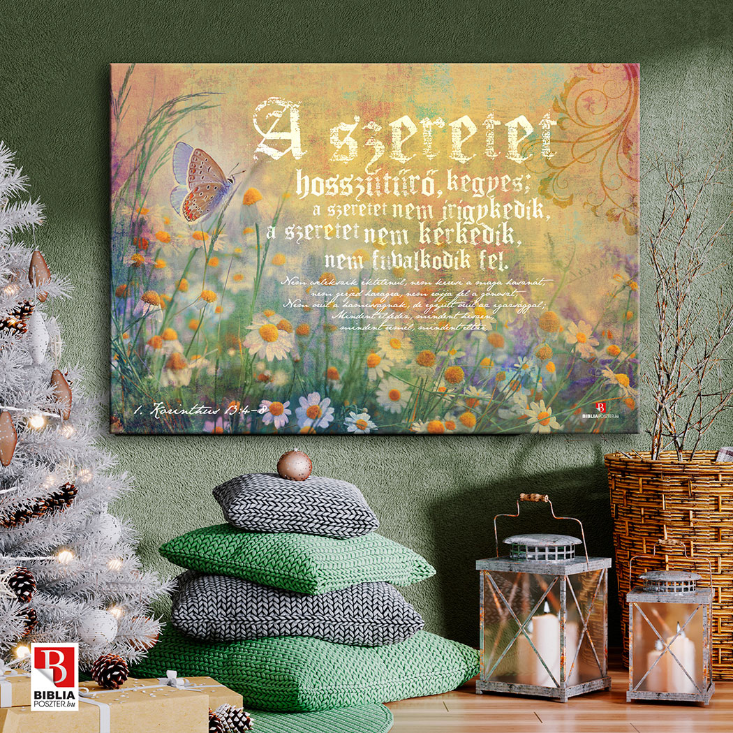 „A szeretet hosszútűrő, kegyes; a szeretet nem irígykedik, a szeretet nem kérkedik, nem fuvalkodik fel. Nem cselekszik éktelenül, nem keresi a maga hasznát, nem gerjed haragra, nem rójja fel a gonoszt, Nem örül a hamisságnak, de együtt örül az igazsággal; Mindent elfedez, mindent hiszen, mindent remél, mindent eltűr. A szeretet soha el nem fogy: de legyenek bár jövendőmondások, eltöröltetnek; vagy akár nyelvek, megszünnek; vagy akár ismeret, eltöröltetik.”