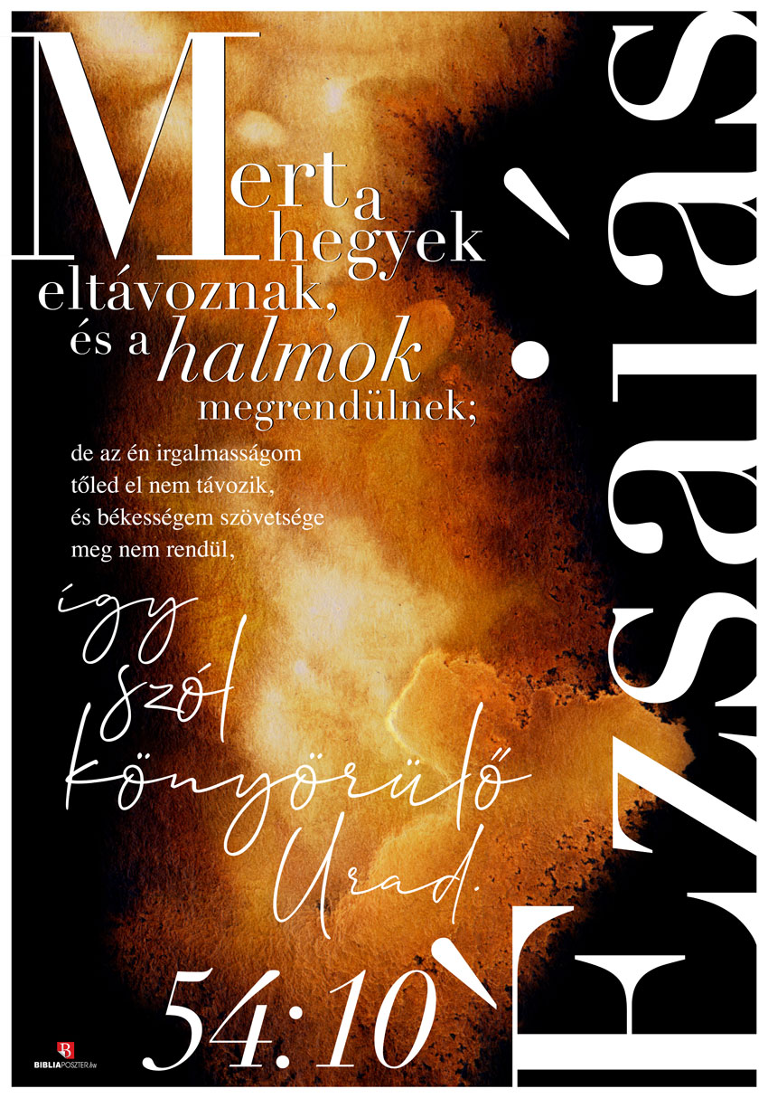 „Mert a hegyek eltávoznak, és a halmok megrendülnek; de az én irgalmasságom tőled el nem távozik, és békességem szövetsége meg nem rendül, így szól könyörülő Urad.;”