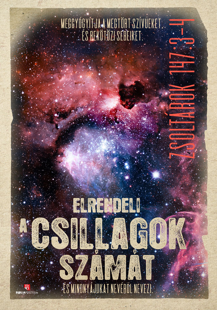 „Meggyógyítja a megtört szívűeket, és bekötözi sebeiket. Elrendeli a csillagok számát, és mindnyájukat nevéről nevezi.”
