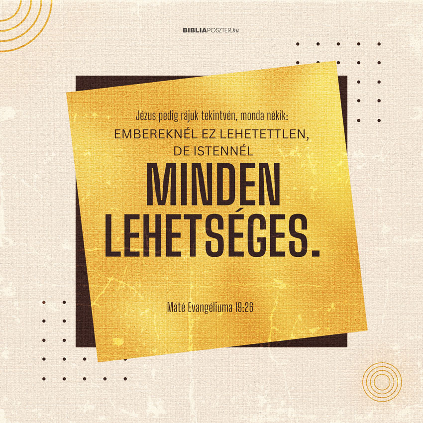 „Jézus pedig rájuk tekintvén, monda nékik: Embereknél ez lehetetlen, de Istennél minden lehetséges.;”