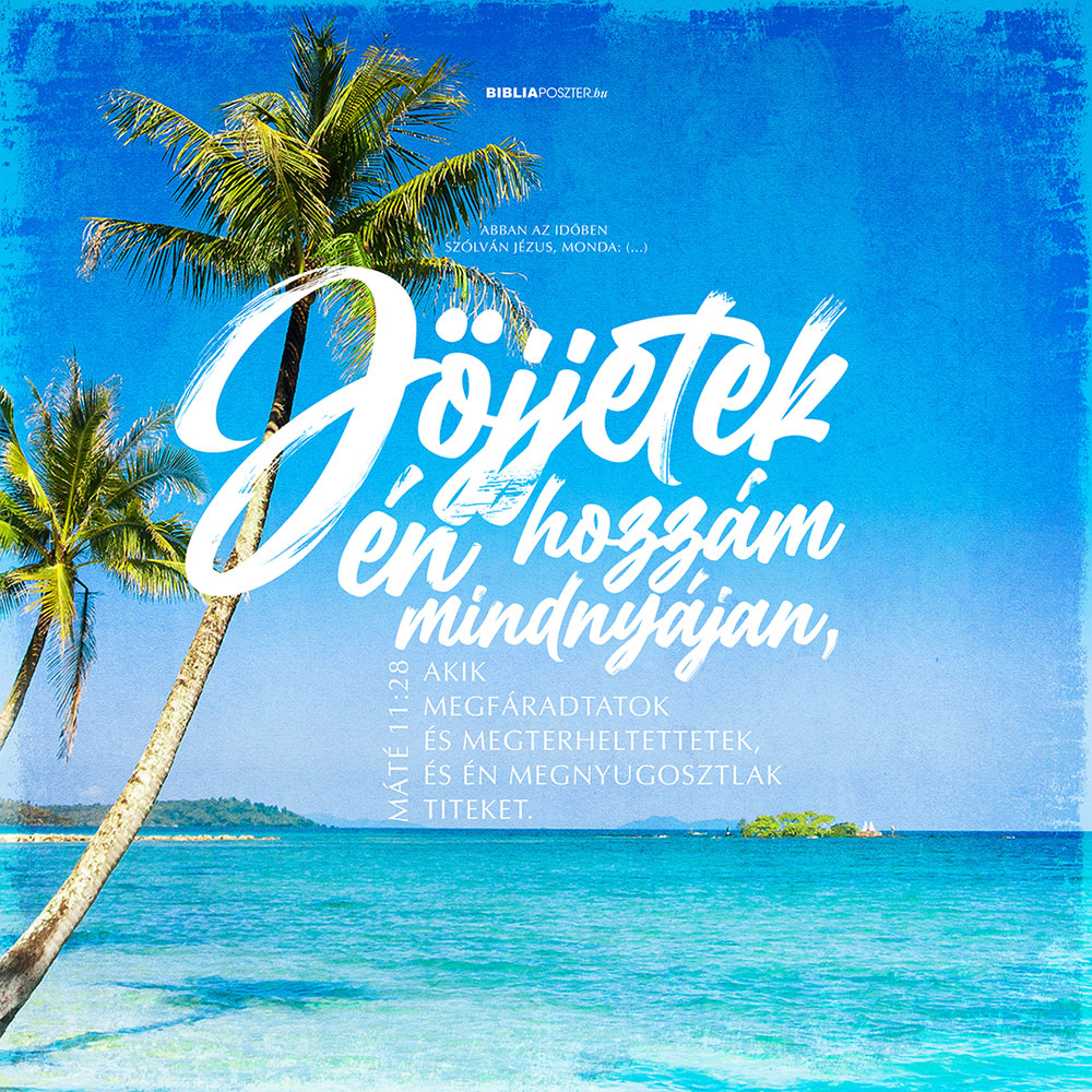 „Jöjjetek én hozzám mindnyájan, akik megfáradtatok és megterheltettetek, és én megnyugosztlak titeket.”